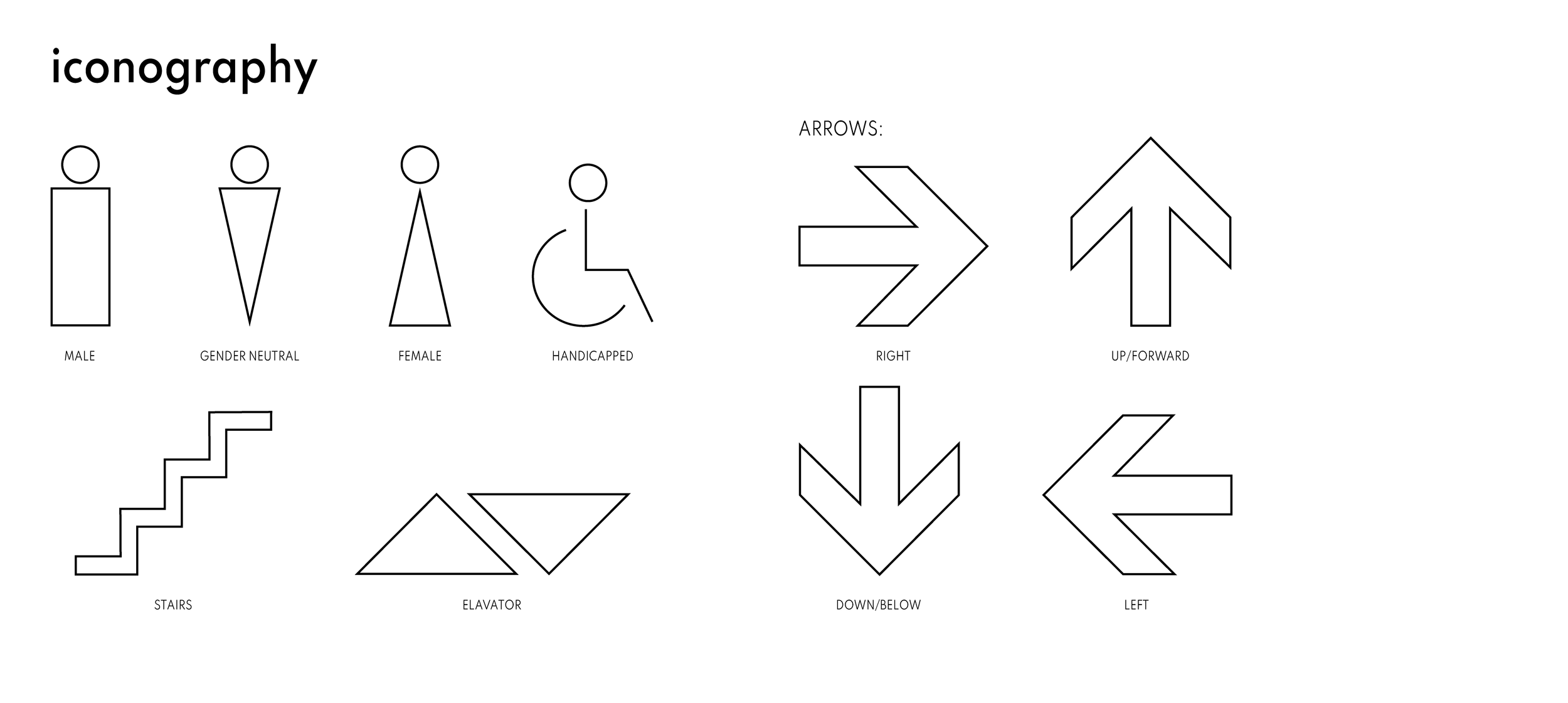 For the interior, I made the signage interactive due to the student body being made up of creatives. Each floor has a sign that provides the floor number and room numbers (12.1). The interactive system comes into play with each room number being assigned a symbol. The idea is for students to draw the symbol using the provided chalk (12.2) on the chalkboard wall tiles in the direction of the room (à la Hansel and Gretel breadcrumb trail). The system produces wayfinding information, artistic participation, as well as artwork to brighten the halls.